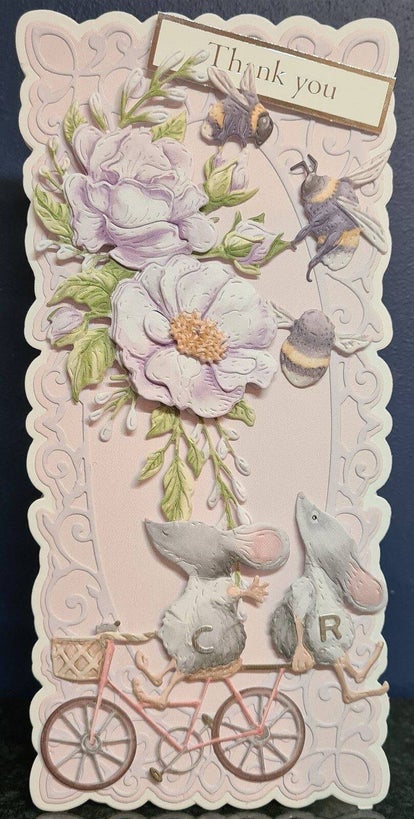 Die cut cards are created with the aid of metal cutting dies. The metal dies allow elements and patterns to be cut into the main card shape and also to create the intricate detailed decoupage overlays.